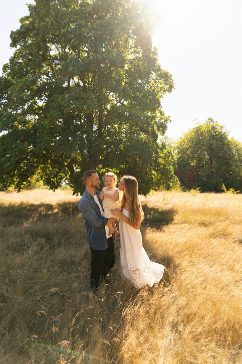 On a sunny afternoon, I had the joy of photographing one of my best college friends, her husband, and their adorable daughter. The park’s long, golden grass swayed gently in the breeze, and sunlight peeked through the trees, creating the perfect backdrop for capturing natural family moments.